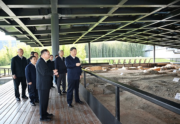 10月10日至13日,中共中央總書(shū)記、國(guó)家主席、中央軍委主席習(xí)近平在江西考察。這是11日上午,習(xí)近平在景德鎮(zhèn)市陶陽(yáng)里歷史文化街區(qū)南麓遺址考察。